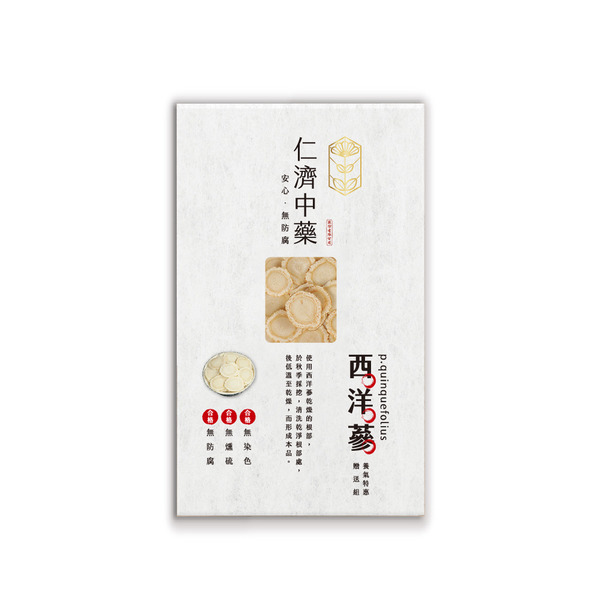 西洋參也稱粉光參、花旗蔘,主要功效為益氣養陰,清熱生津,我們使用於秋季採挖乾燥的根部,洗淨,後低溫至乾燥,而形成本品,此生產加工過程及進口過程符合無農藥殘留、無重金屬、無燻二氧化硫、無防腐的品質要求。