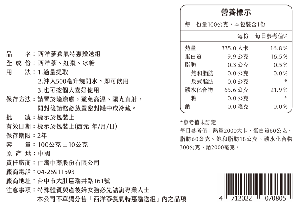 西洋參養氣特惠贈送組-100g