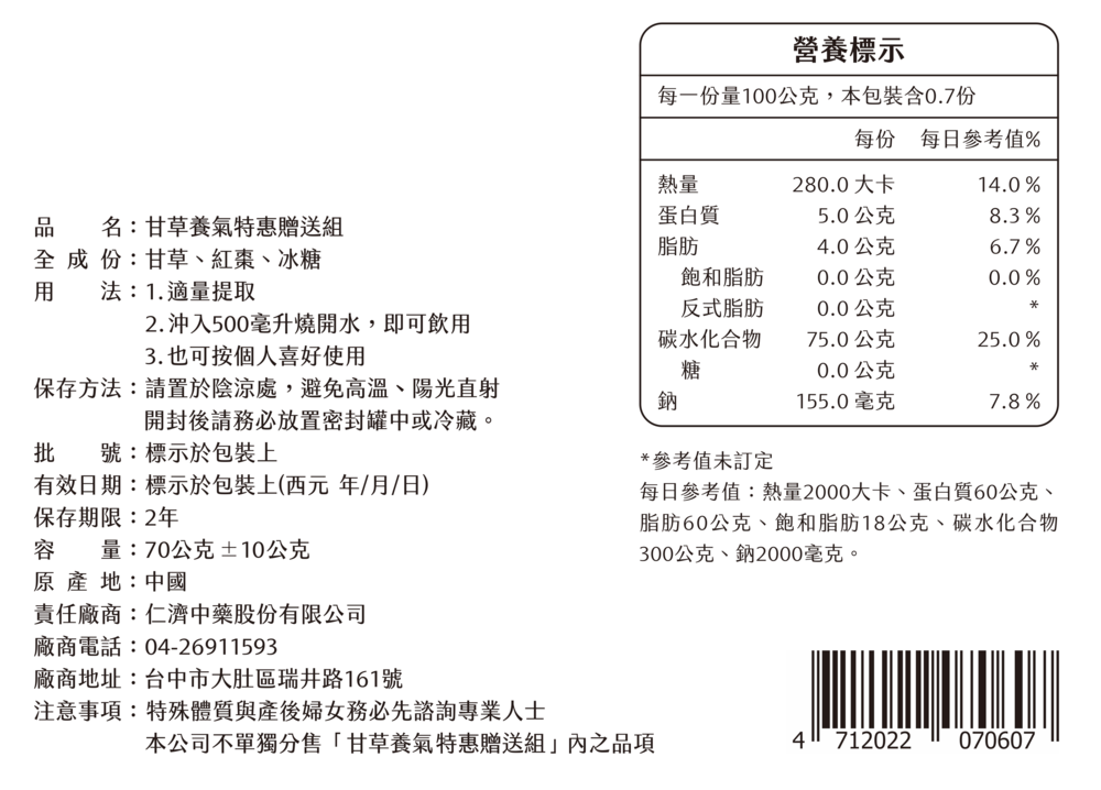 甘草養氣特惠贈送組-70g