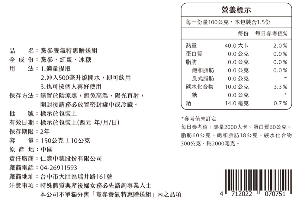 此黨參只使用乾燥的根部,於秋季時採收,收成後八小時內完成品質篩選,先洗淨根上泥土,後晾曬至乾燥,在切厚片,如此才可不使用防腐劑及燻二氧化硫的動作,而形成本品,此生產加工過程及進口過程符合無農藥殘留、無重金屬、無燻二氧化硫、無防腐的品質要求。