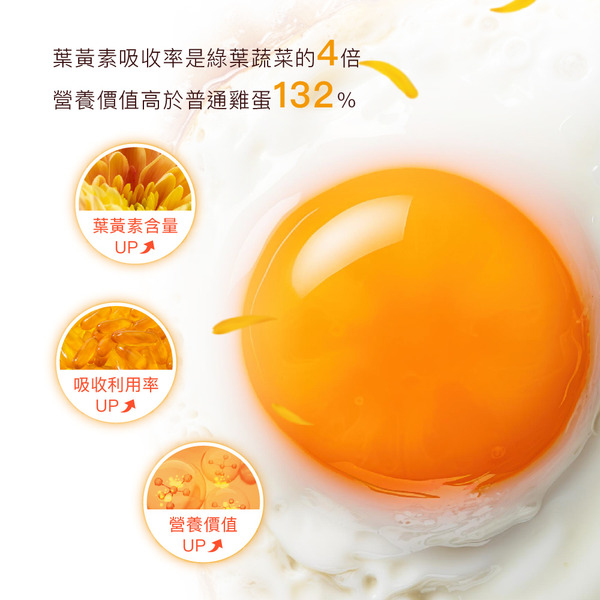 我們選擇以草本的金盞花葉黃素酵素來培育雞隻,最終始蛋黃呈現深邃橘紅的葉黃素色澤,更重要的是擁有高吸收度的葉黃素排名。雞蛋中的脂質讓葉黃素更能被身體運用,是有助於晶亮健康的葉黃素食物,這也讓我們的葉黃素雞蛋在雞蛋市場上脫穎而出。