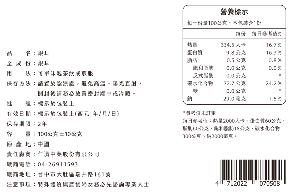 銀耳/白木使用於春秋採收生長在木耳科椴木樹上的銀耳,將鮮銀耳以清水洗淨,後晾曬至乾燥,而形成本品,此生產加工過程及進口過程符合無農藥殘留、無重金屬、無燻二氧化硫、無防腐的品質要求。